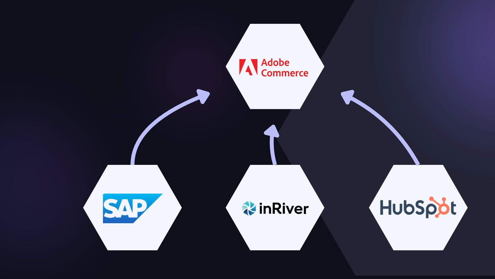 From PIM (product information system) to Magento, order information is sent to SAP, and customer information is sent to Hubspot.